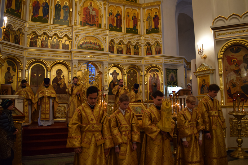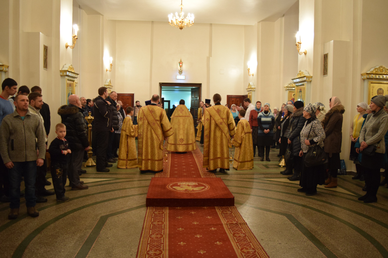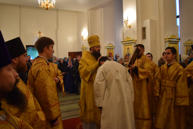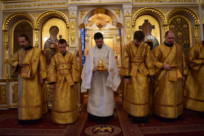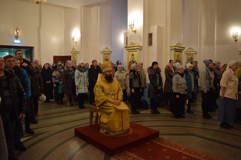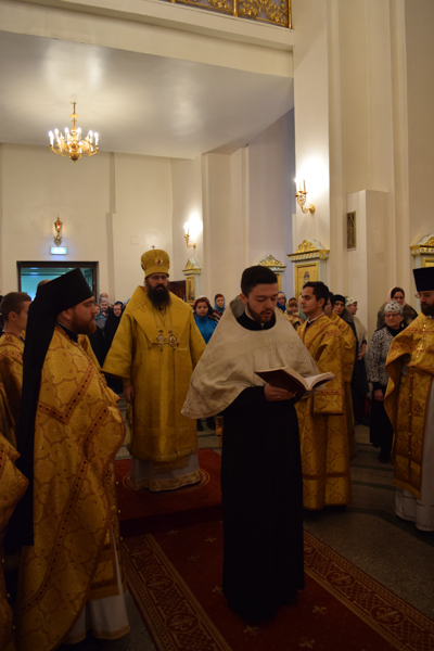 Его Преосвященству сослужили: секретарь Норильской епархии иеромонах Герман (Мельников); соборное духовенство.