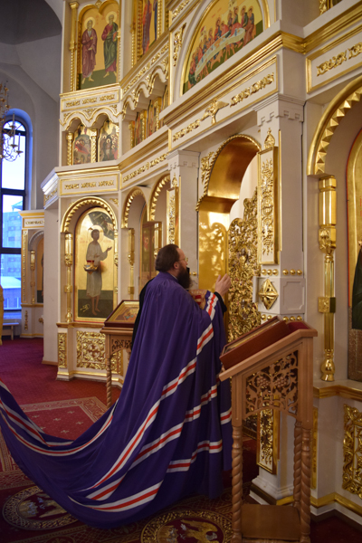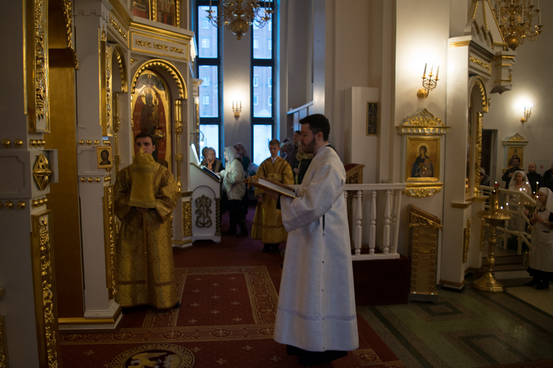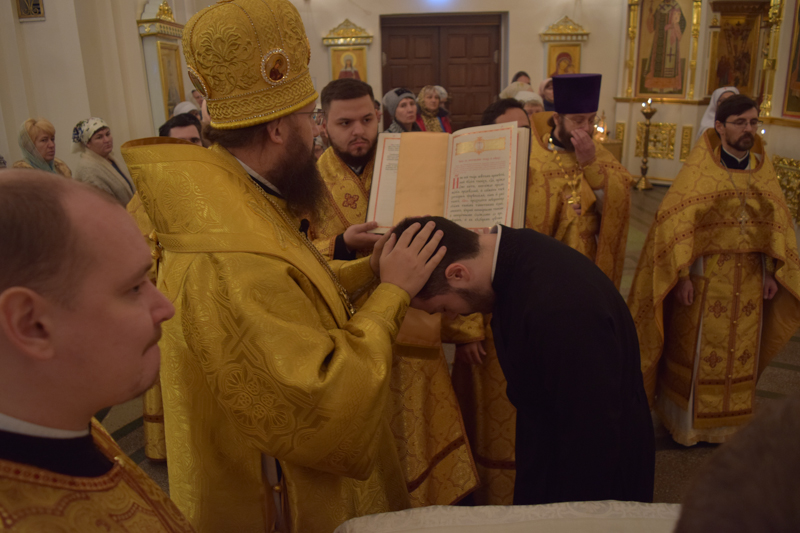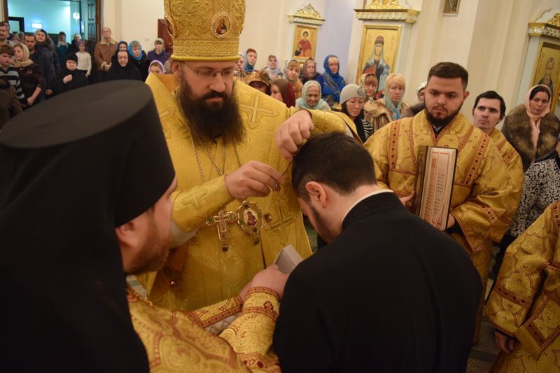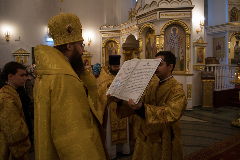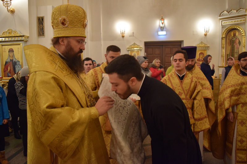 Во время богослужения владыка совершил хиротесию во чтеца над руководителем епархиального отдела по делам молодежи Норильской епархии Дмитрием Прохоровым.