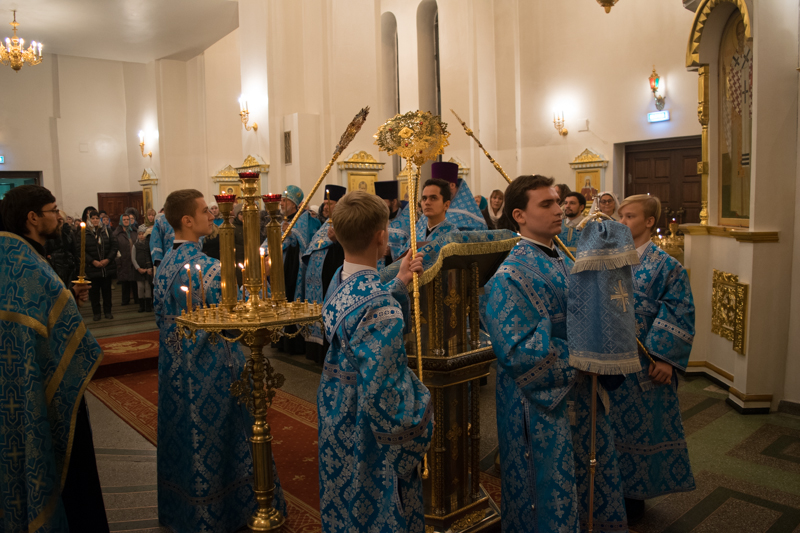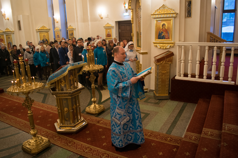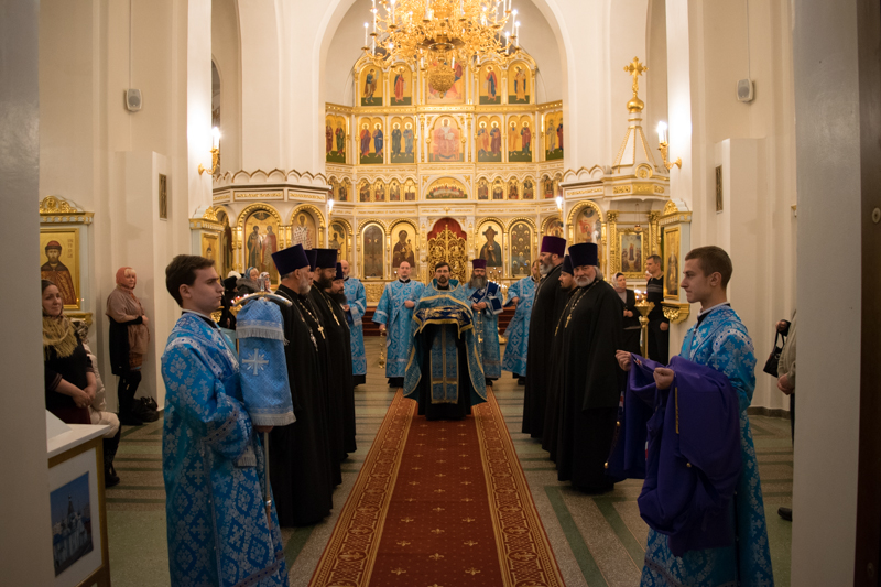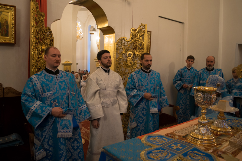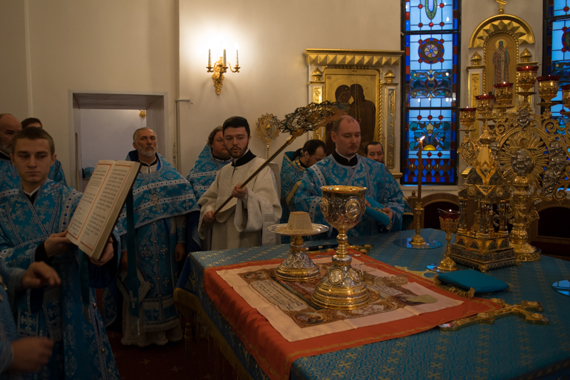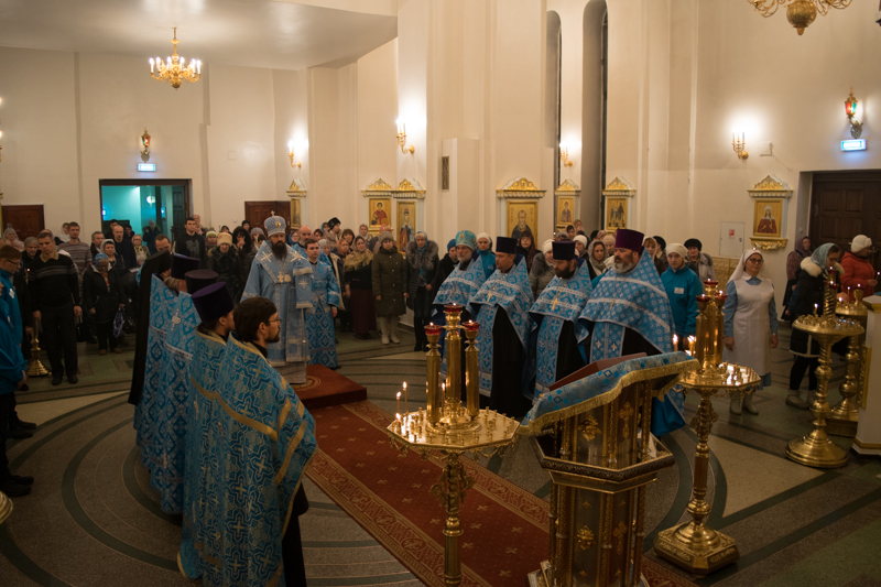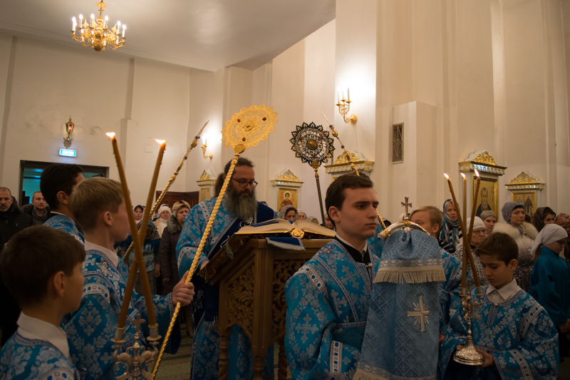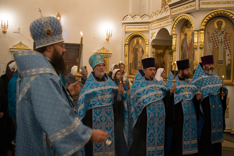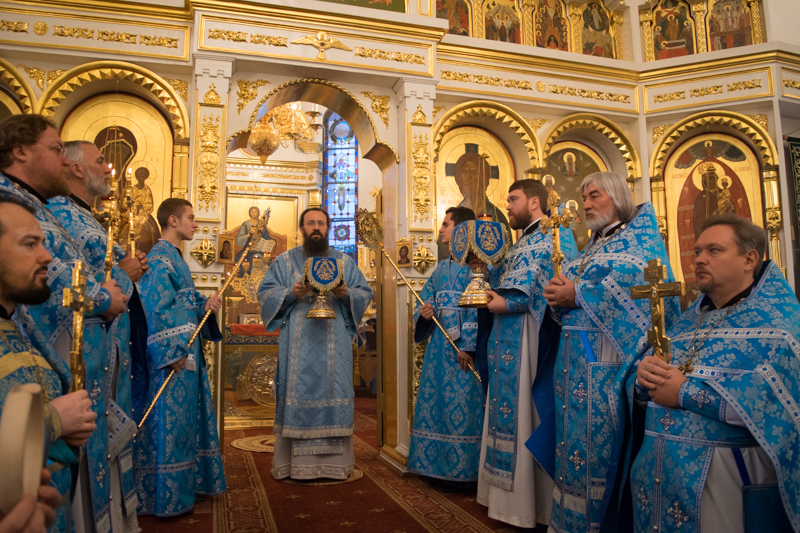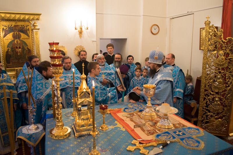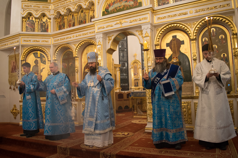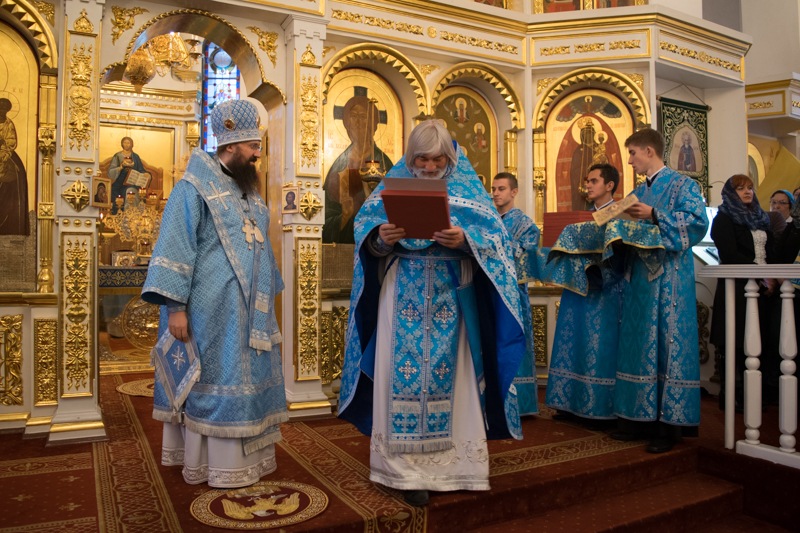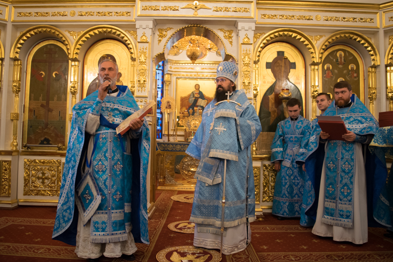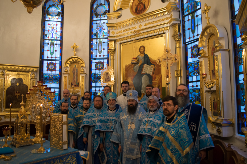 Его Преосвященству сослужили: секретарь Норильской епархии иеромонах Герман (Мельников); первый настоятель прихода, клирик Красноярской епархии протоиерей Сергий Шачин; благочинный Норильского округа протоиерей Владимир Иванов; настоятель Свято-Троицкого храма района Талнах протоиерей Даниил Тихонов; руководитель епархиального отдела по взимодействию с вооруженными силами и силовыми структурами РФ протоиерей Димитрий Харцыз; клирик Свято-Введенского храма города Дудинка иерей Роман Шагиев; преподователь регентской школы при Московской Духовной Академии, заведующи церковно-археологиическим музеем и помощник ректора по представительской работе протодиакон Игорь Михайлов; соборное духовенство.