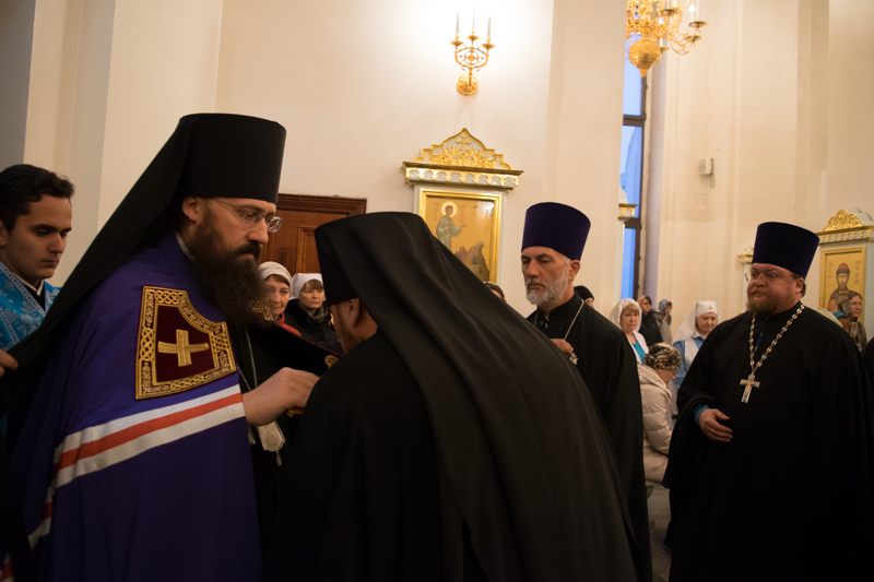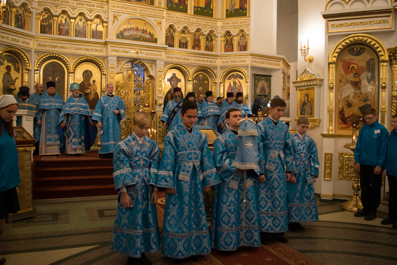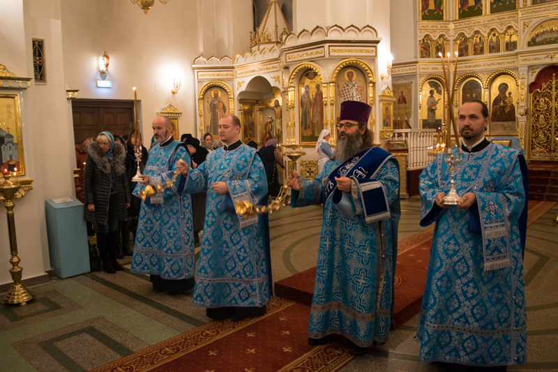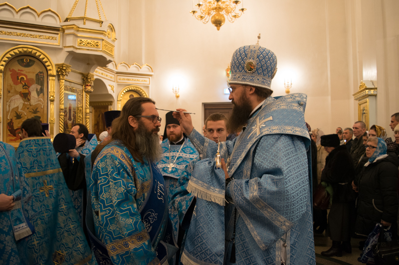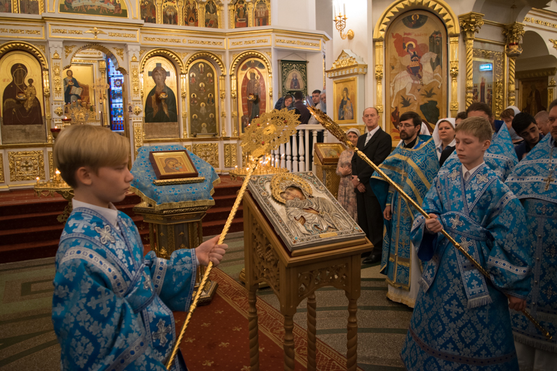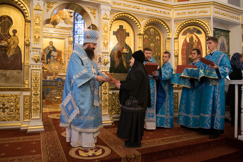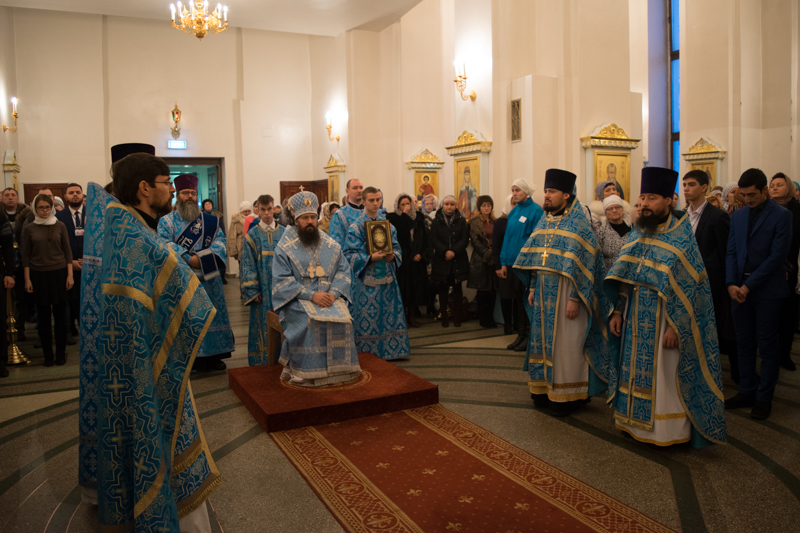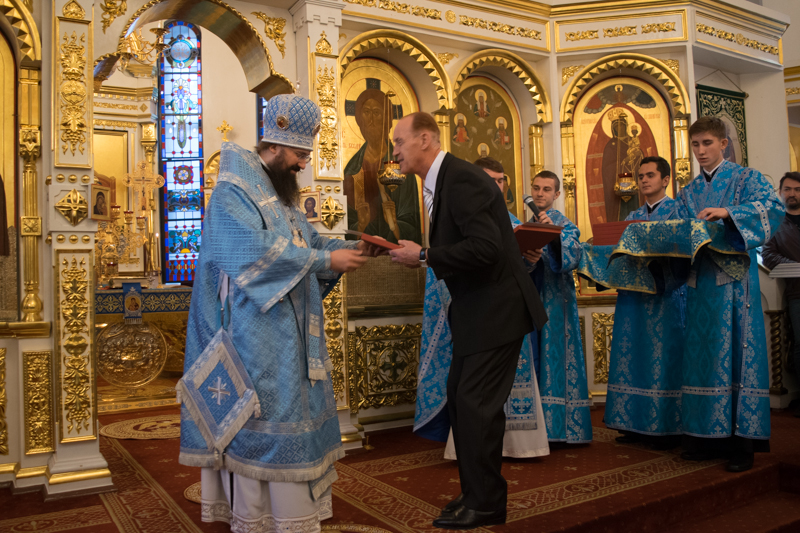 По окончании Божественной литургии Архипастырь в сослужении духовенства совершил освящение иконы Божией Матери "Владимирская", подаренную Заполярным филиалом ПАО "ГМК "Норильский никель" в честь 25-летия Прихода кафедрального собора, после чего, владыка удостоил благословенных архиерейских грамот активных сотрудников Прихода.