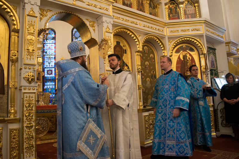 Во время богослужения владыка совершил хиротонию во диакона над руководителем епархиального отдела по делам молодежи Норильской епархии Прохоровым Дмитрием.