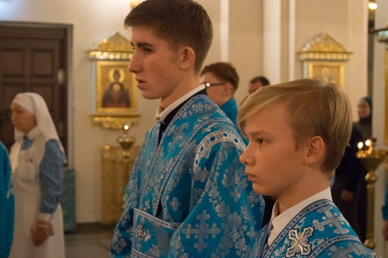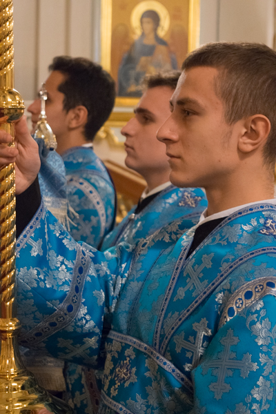 Богослужебные песнопения исполнял хор Московской Духовной Академии под руководством иеромонаха Нестора (Волкова).