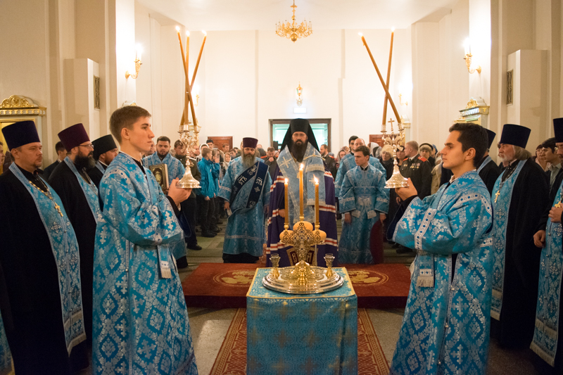 Богослужение возглавили: викарий Святейшего Патриарха Московского и всея Руси Кирилла, Ректор Московской духовной академии Высокопреосвященнейший Евгений, архиепископ Верейский и Управляющий Норильской епархии Преосвященнейший Агафангел епископ Норильской и Туруханский.