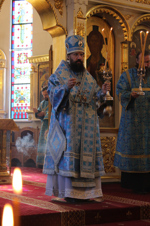 На кануне Архипастырь совершил Всенощное бдение вкафедральном соборе в честь иконы Божией Матери «Всех скорбящих Радость» города Норильска.
