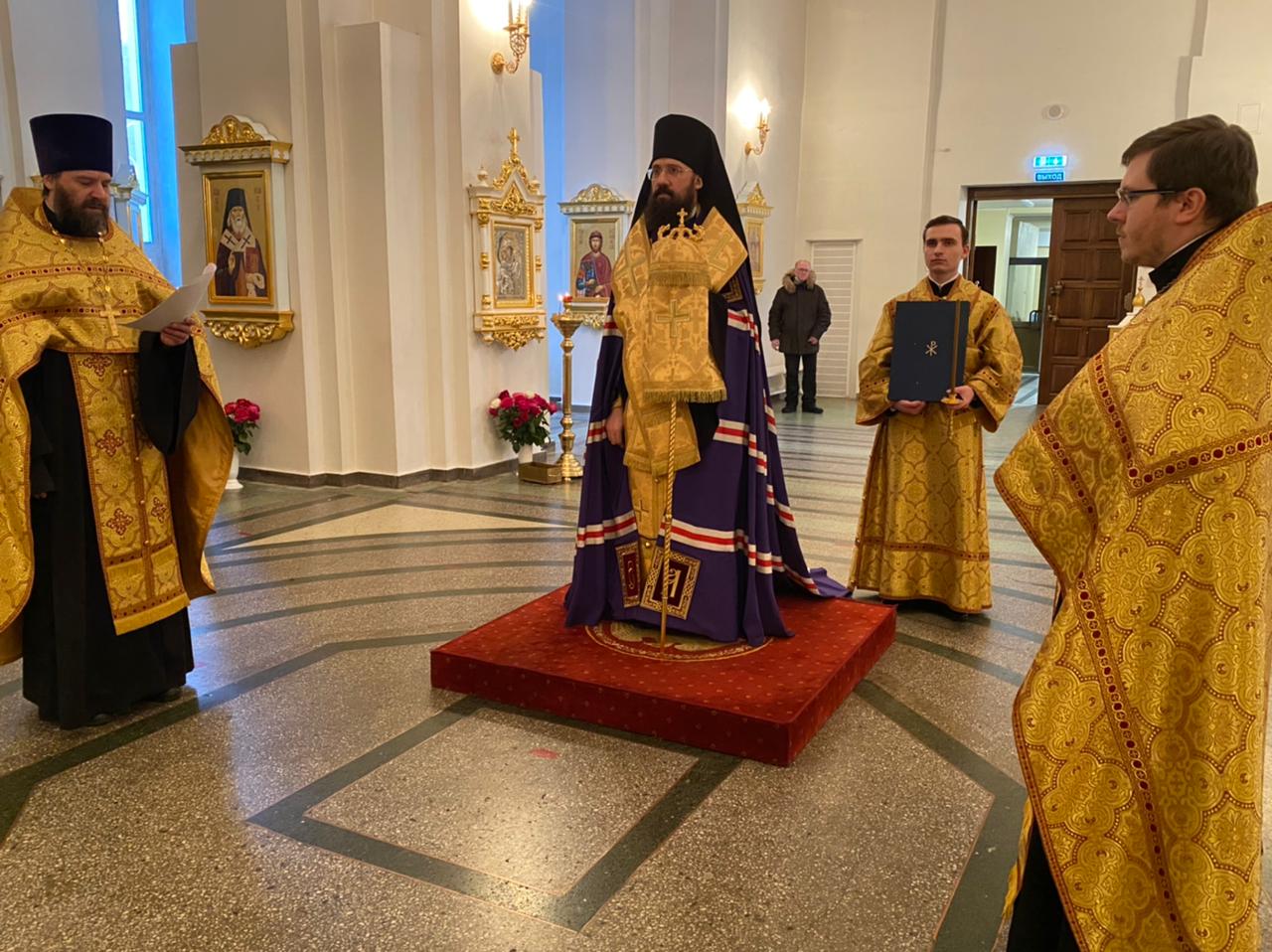 12 февраля 2021 года, в день памяти святителей Василия Великого, Григория Богослова и Иоанна Златоустаго и мученика Стефана Наливайко, Преосвященнейший Агафангел, епископ Норильский и Туруханский, совершил Божественную литургию в кафедральном соборе в честь иконы Божией Матери «Всех скорбящих Радость» города Норильска.