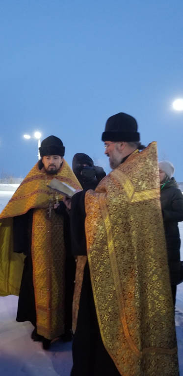 19 декабря 2020 года, в день памяти святителя и чудотворца Николая, священнослужители и прихожане Свято-Введенского храма города Дудинки после окончания Божественной Литургии совершили Крестный Ход к памятнику святителя Николая, где был совершен молебен.