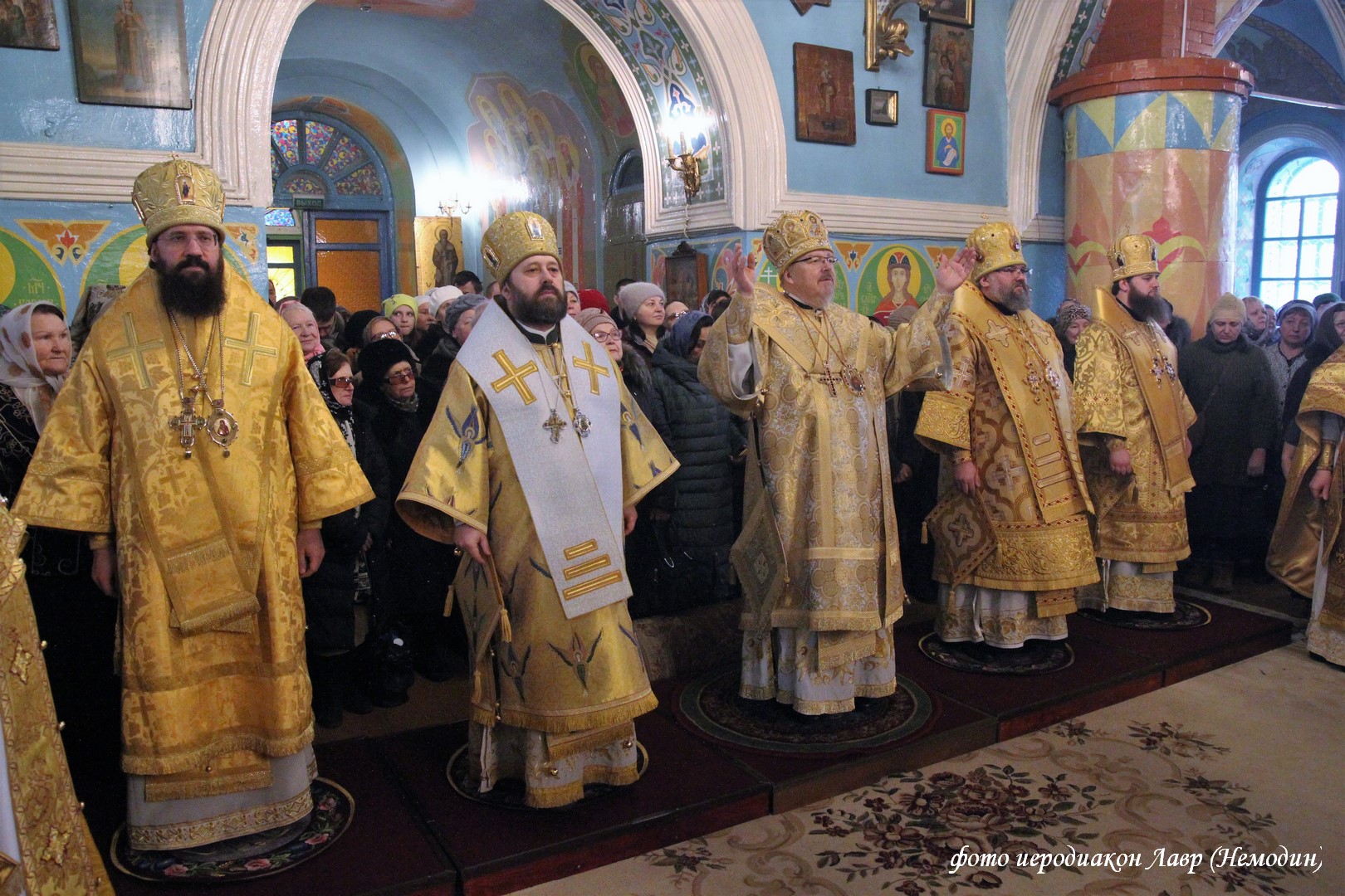 23 февраля 2020 года, в Неделю мясопустную, о страшном суде, митрополит Красноярский и Ачинский Пантелеимон, архиепископ Абаканский и Хакасский Ионафан, епископ Минусинский и Курагинский Никанор, епископ Норильский и Туруханский Агафангел и епископ Енисейский и Лесосибирский Игнатий совершили Божественную литургию в Спасском кафедральном соборе г. Минусинска.