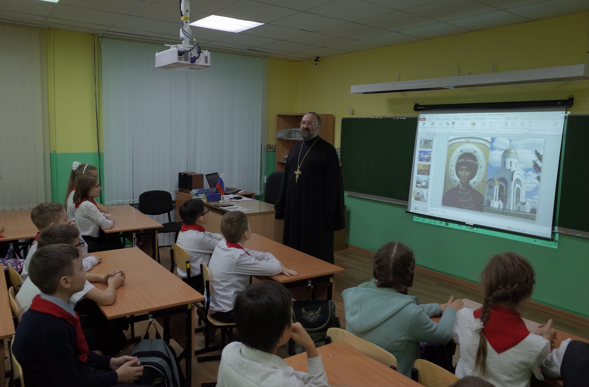 На уроке присутствовал настоятель Свято-Введенского храма города Дудинки протоиерей Георгий Ицков.