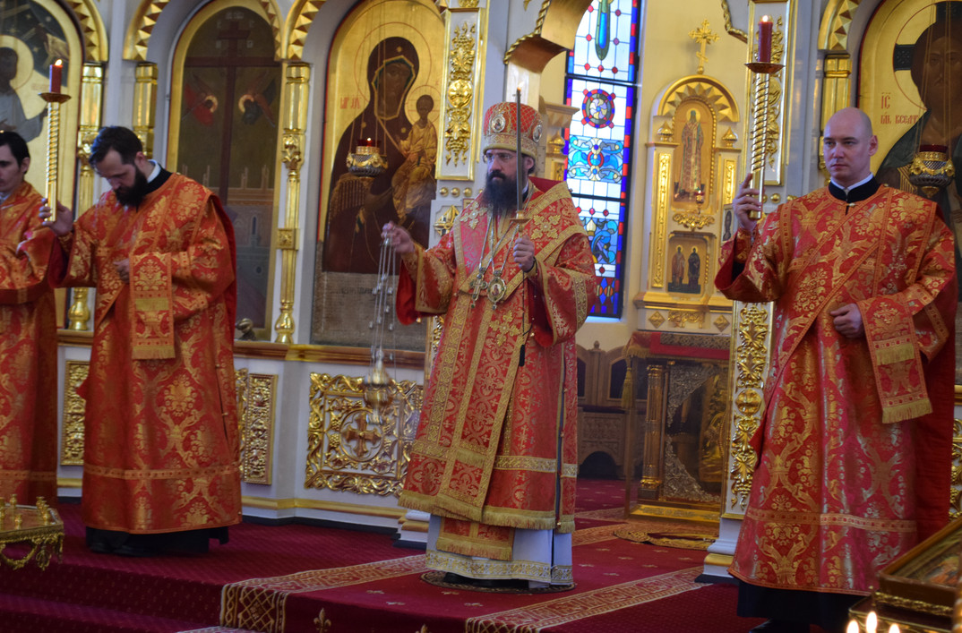 9 мая 2019 года, в День Великой Победы, в кафедральном соборе в честь иконы Божией Матери «Всех скорбящих Радость» города Норильска епископ Агафангел совершил Божественную литургию.
