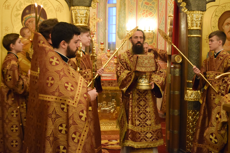 Накануне архипастырь совершил Всенощное бдение в кафедральном соборе в честь иконы Божией Матери "Всех скорбящих Радость" города Норильска.