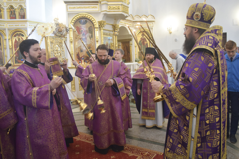 25 марта 2018 года, в Неделю 5-ю Великого поста, в день памяти преподобной Марии Египетской, Преосвященнейший Агафангел епископ Норильский и Туруханский совершил Божественную литургию святителя Василия Великого в кафедральном соборе в честь иконы Божией Матери «Всех скорбящих Радость» города Норильска.
