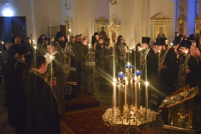 Вечером 19 февраля 2018 года, в понедельник первой седмицы Великого поста, Преосвященнейший Агафангел, епископ Норильский и Туруханский совершил великое повечерие с чтением Великого покаянного канона преподобного Андрея Критского в кафедральном соборе в честь иконы Божией Матери «Всех скорбящих Радость» города Норильска.