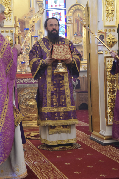 Его Преосвященству сослужили: секретарь Норильской епархии иеромонах Герман (Мельников); благочинный Норильского округа протоиерей Владимир Иванов; штатные клирики кафедрального собора.