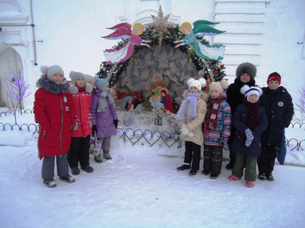 8 января 2018 года ребята из воскресной школы при Свято-Троицком Туруханском монастыре вместе с настоятелем обители игуменом Софронием (Семеновым) и иеродиаконом Корнилием (Огарковым) отправились на традиционные колядки.