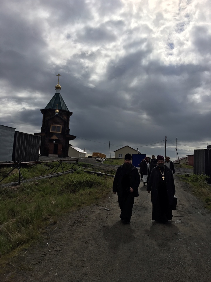 5 июля 2017 года 2016 года, в день памяти священномученика Евсевия, епископа Самосатского, Преосвященнейший епископ Агафангел совершил Божественную литургию в строящемся храме святого великомученика Георгия Победоносца поселка Усть-Порт Таймырского района.