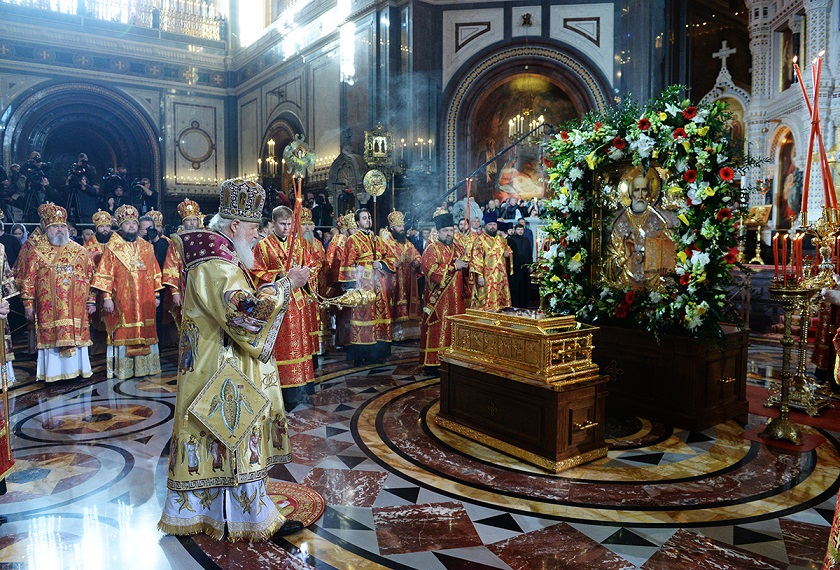 22 мая 2017 года, в день празднования перенесения мощей святителя Николая Чудотворца из Мир Ликийских в Бар (1087), Святейший Патриарх Московский и всея Руси Кирилл совершил Божественную литургию в Храме Христа Спасителя г. Москвы. В кафедральном соборе пребывает ковчег с частью честных мощей святителя и чудотворца Николая, архиепископа Мир Ликийских, доставленный накануне из Бари в Москву. Его Святейшеству сослужили: митрополит Крутицкий и Коломенский Ювеналий; митрополит Санкт-Петербургский и Ладожский Варсонофий, управляющий делами Московской Патриархии; митрополит Волоколамский Иларион, председатель Отдела внешних церковных связей; митрополит Некресский Сергий (Грузинская Православная Церковь); собор иерархов и духовенства Русской Православной Церкви. Среди сонма архиереев Русской Православной Церкви Святейшему Патриарху сослужил епископ Норильский и Туруханский Агафангел.