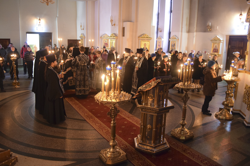 Вечером 28 февраля 2017 года, во вторник первой седмицы Великого поста, Преосвященнейший Агафангел, епископ Норильский и Туруханский совершил великое повечерие с чтением Великого покаянного канона преподобного Андрея Критского в кафедральном соборе в честь иконы Божией Матери «Всех скорбящих Радость» города Норильска.