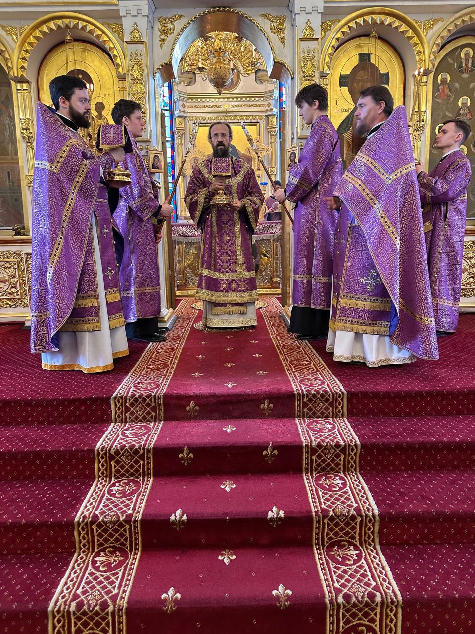 После великого славословия епископ Агафангел совершил чин выноса Креста.