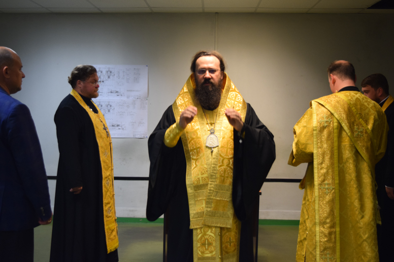 Его Преосвященству сослужили: секретарь Норильской епархии иеромонах Герман (Мельников); благочинный Норильского округа протоиерей Владимир Иванов; соборное духовенство.