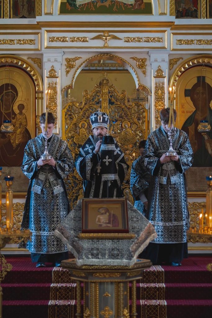 7 марта 2025 года, в пятницу первой седмицы Великого поста, Преосвященнейший Агафангел, епископ Норильский и Туруханский, молился за великопостными утреней, часами и изобразительными в кафедральном соборе иконы Божией Матери «Всех скорбящих Радость» города Норильска. Затем Архипастырь совершил Литургию Преждеосвященных Даров.
