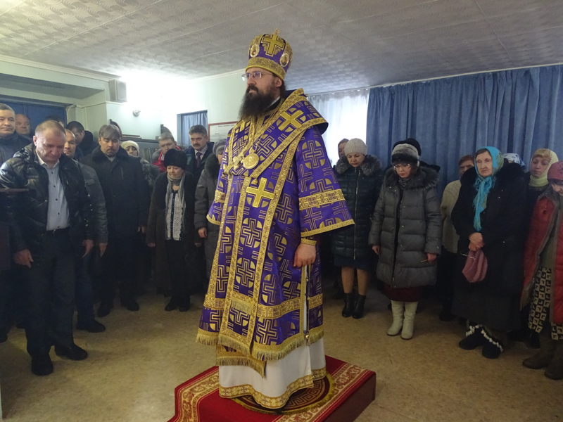 Его Преосвященству сослужил благочинный Таймырского округа, настоятель Введенского храма города Дудинки протоиерей Георгий Ицков.