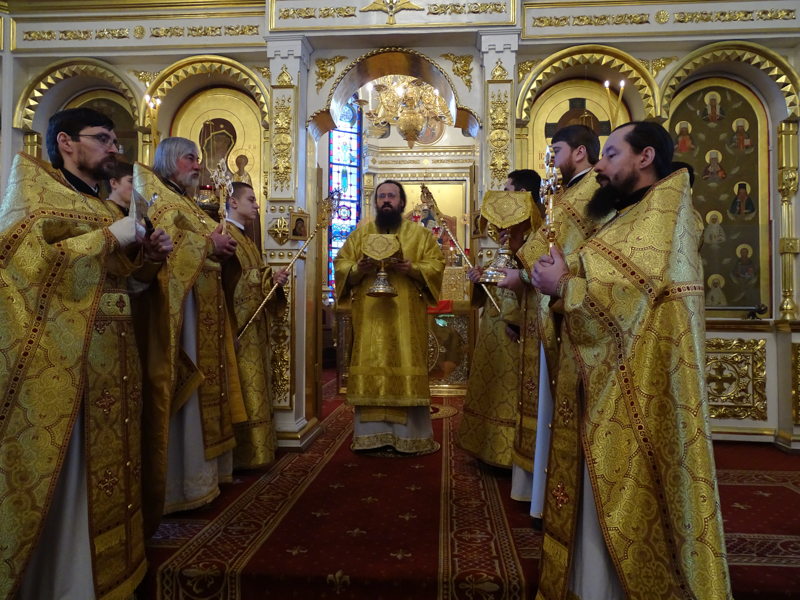 Его Преосвященству сослужили: секретарь Норильской епархии иеромонах Герман (Мельников); духовенство кафедрального собора.
