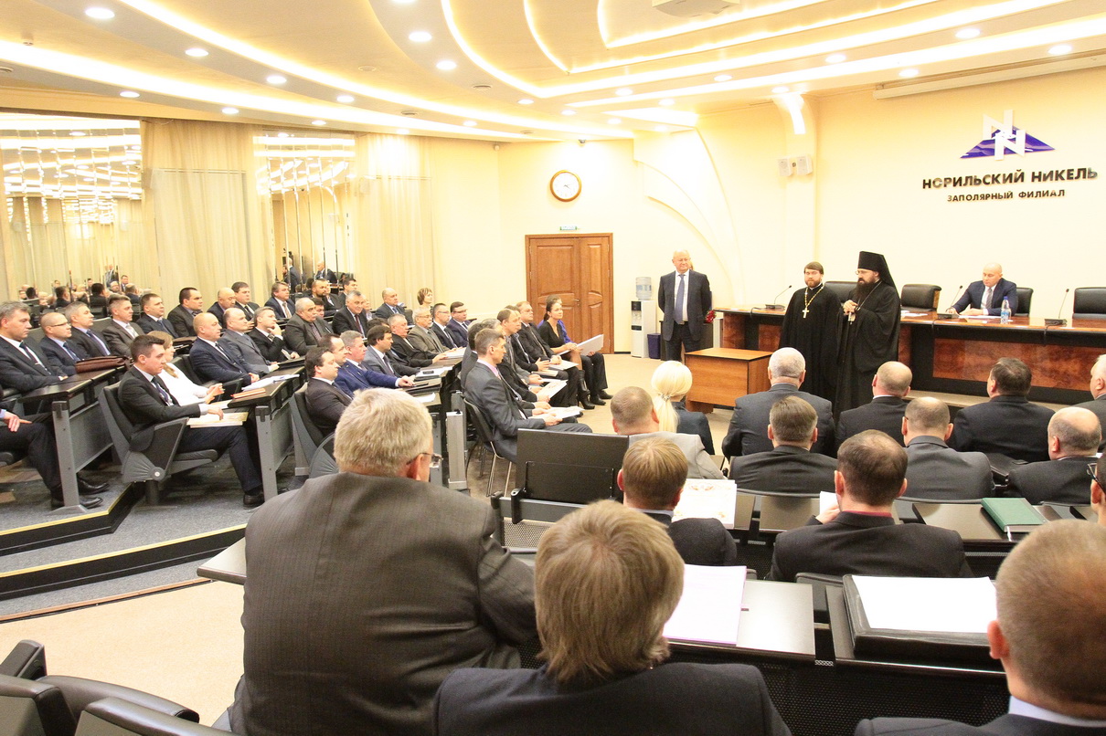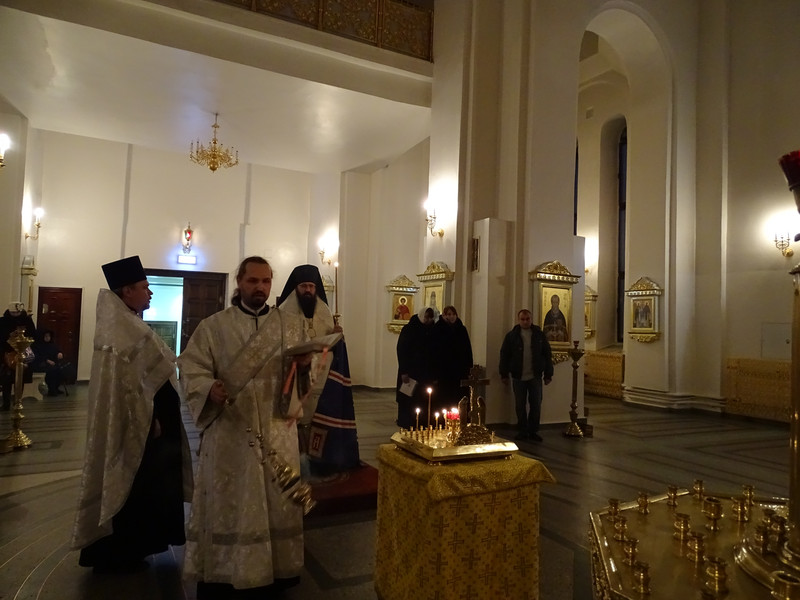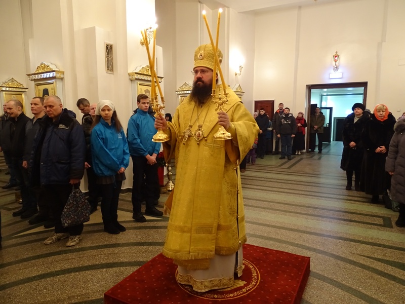 Его Преосвященству сослужили: секретарь Норильской епархии иеромонах Герман (Мельников) и штатный клир кафедрального собора города Норильска.