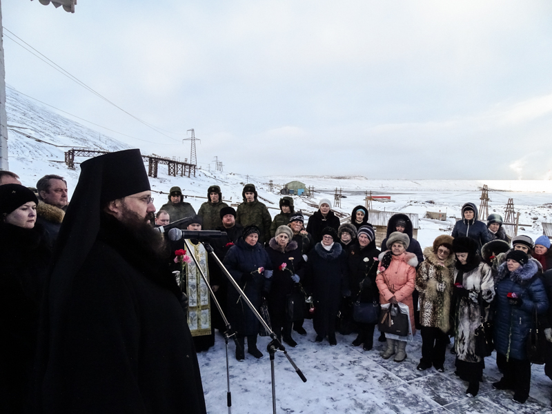 Его Преосвященство сопровождали: секретарь Норильской епархии иеромонах Герман (Мельников); председатель епархиального отдела по взаимодействию с силовыми структурами протоиерей Димитрий Харцыз; настоятель Свято-Троицкого храма района Талнах протоиерей Даниил Тихонов.