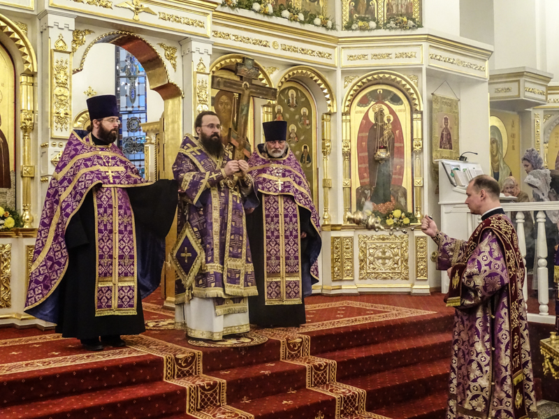 Его Преосвященству сослужили: секретарь Норильской епархии иеромонах Герман (Мельников); благочинный Норильского округа протоиерей Владимир Иванов; руководитель епархиального отдела по взаимодействию с силовыми структурами протоиерей Димитрий Харцыз; духовенство кафедрального собора.