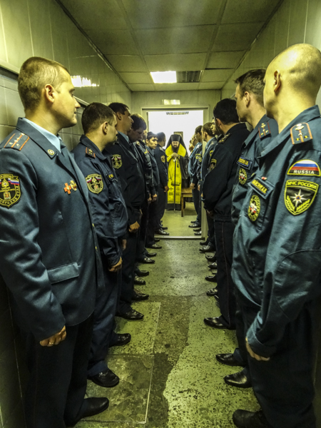 8 Сентября, Его Преосвященство Преосвященнейший Агафангел епископ Норильский и Туруханский совершил чин освящения новоустроенной часовни в 7 Отряде противопожарной службы г. Норильска. Управляещему Норильской епархии сослужили: секретарь епархии иеромонах Герман (Мельников) и руководитель епархиального отдела по взаимодействию с силовыми структурами протоиерей Димитрий Харцыз. По окончании богослужения Преосвященнейший Агафангел обратился к собравшимся со словами проповеди и поздравив всех с этим большим событием, подчеркнул важность православной веры в жизни человека, который по долгу службы рискует свей жизнью.