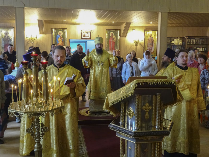 26 июля 2015 года, Неделя 8-я по Пятидесятнице, память отцов шести Вселенских Соборов, Преосвященнейший Агафангел, епископ Норильский и Туруханский, совершил Божественную литургию в храме рождества Иоанна Предтечи города Норильска.
