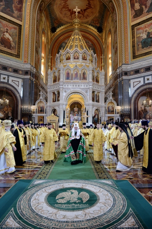 В этот день Святейший Патриарх Московский и всея Руси Кирилл совершил Божественную литургию в кафедральном соборном Храме Христа Спасителя г. Москвы.