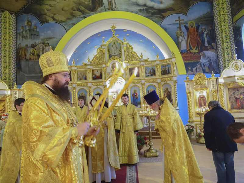 Его Преосвященству сослужили: секретарь Норильской епархии иеромонах Герман (Мельников), благочинный Норильского округа протоиерей Владимир Иванов; руководитель епархиального отдела по социальной работе и церковной благотворительности иерей Сергий Андреев.