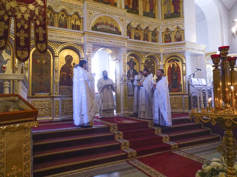 Его Преосвященству сослужили: секретарь епархии иеромонах Герман (Мельников), благочинный Норильского округа протоиерей Владимир Иванов и духовенство кафедрального собора.