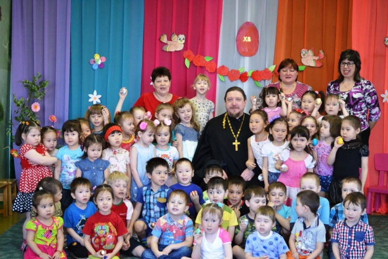 19 апреля в Фомину Неделю состоялся пасхальный утренник в Талнахе. После Божественной литургии прихожане собрались вместе, чтобы разделить радость о воскресшем Христе Спасителе. В праздничной программе было рассказано об истории, сущности праздника Пасхи и о православных традициях празднования. Утренник открылся небольшим концертом, подготовленным воспитанниками воскресной школы. Учащиеся представили вниманию зрителей пасхальные стихи, песни. Продолжился утренник спектаклем "Пасхальный колобок", подготовленный взрослыми прихожанами. Завершило утренник представление мыльных пузырей.
