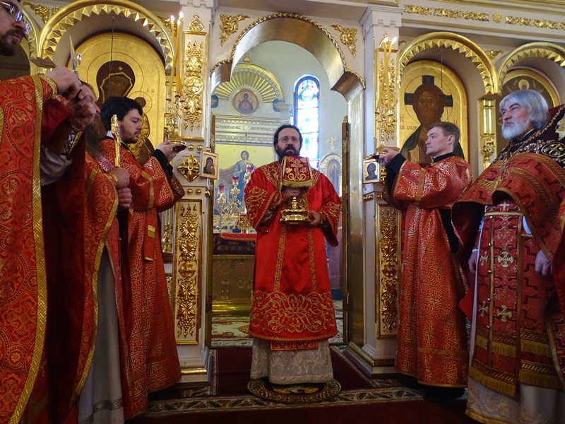 За Богослужением были вознесены особые прошения на сугубой ектении и прочитана молитва о мире на Украине.