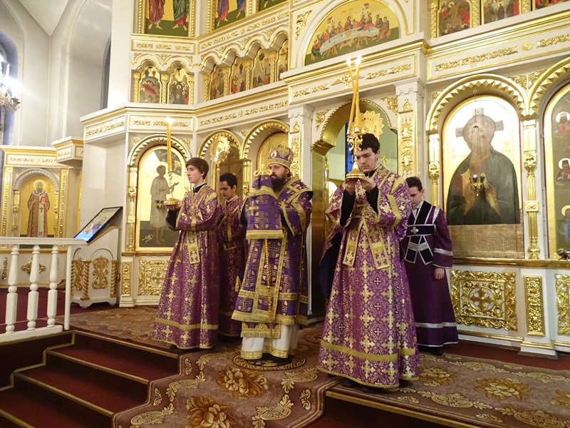 27 февраля, в пятницу первой седмицы Великого поста, Преосвященнейший епископ Агафангел совершил Литургию Преждеосвященных Даров в Свято-Введенском храме города Дудинки.