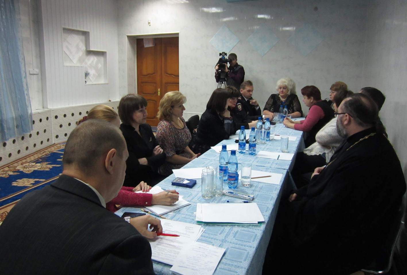 В актовом зале присутствовало духовенство кафедрального собора и близлежащих приходов, а также ребята, готовящиеся к поступления в духовные учебные заведения и к принятию священного сана.