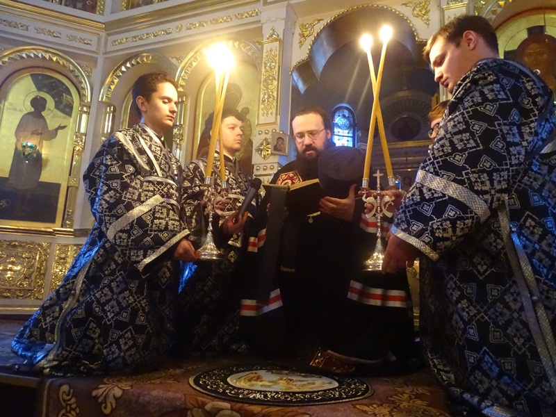 Его Преосвященству сослужило духовенство кафедрального собора.
