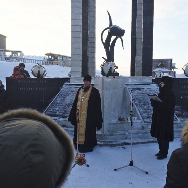 15 Февраля духовенство норильской епархии приняло участие в общегородском митинге, посвященному 26-й годовщине вывода советских войск из Республики Афганистан и Дню Воина- Интернационалиста. По благословению Его Преосвященства Преосвященнейшего Агафангела, епархию представляли благочинный Норильского округа протоиерей Владимир Иванов, руководитель епархиального отдела по взаимодействию с вооруженными силами и правоохранительными структурами протоиерей Димитрий Харцыз