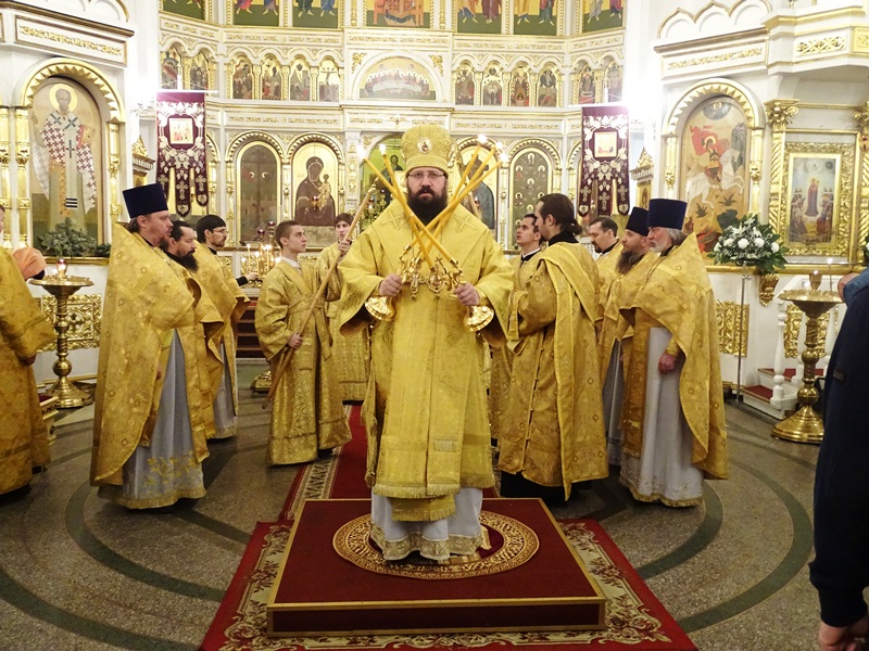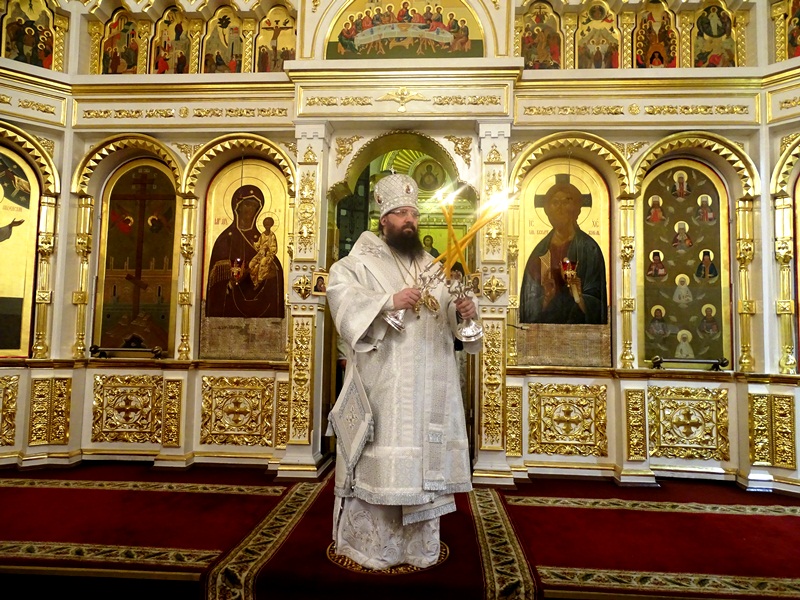 Среди сонма архиереев его Святейшеству Сослужил Управляющий Норильское епархией – Преосвященнейший Агафангел, епископ Норильский и Туруханский.