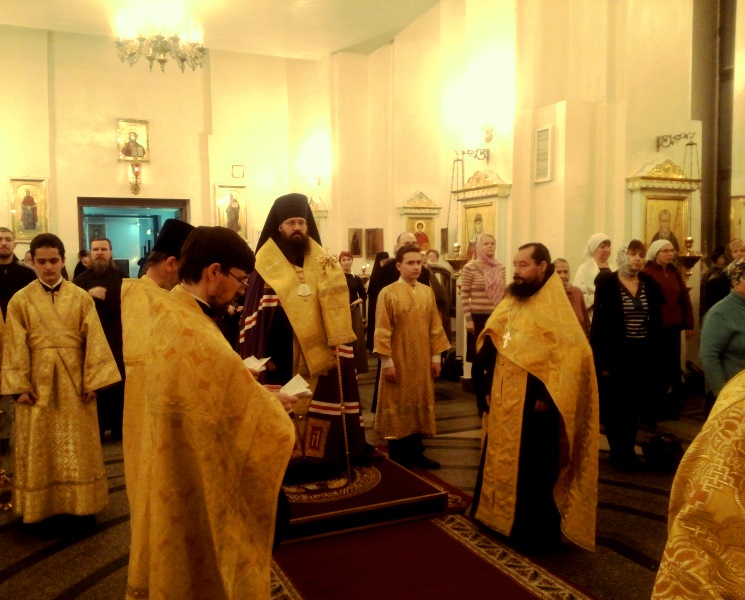 Его Преосвященству сослужили: исполняющий обязанности секретаря епархии иеромонах Герман (Мельников), клирики кафедрального собора.
