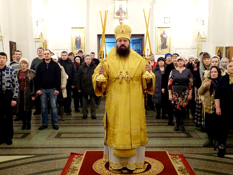 Архипастырю сослужили: исполняющий обязанности секретаря епархии иеромонах Герман (Мельников), благочинный Норильского округа протоиерей Владимир Иванов, штатные клирики кафедрального собора.