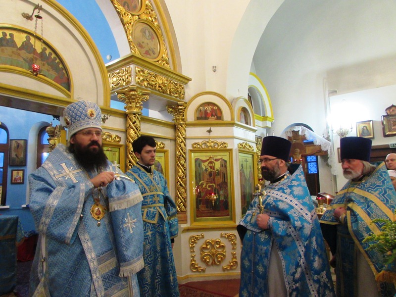 Правящий архиерей совершил в Введенском храме Божественную литургию. Ему сослужили исполняющий обязанности секретаря епархии иеромонах Герман (Мельников), благочинный Норильского округа протоиерей Владимир Иванов, благочинный Таймырского округа протоиерей Георгий Ицков, штатный клирик Свято-Введенского храма иерей Роман Шагиев.