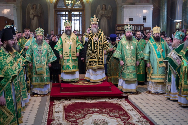 В этот день Владыка молился за Божественной литургией в Казанском храме обители
