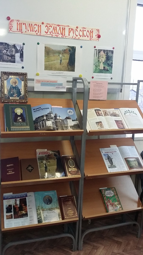 6 октября, по благословению епископа Норильского и Туруханского Агафангела, в Туруханской районной библиотеке, в рамках празднования 700-летия со дня рождения прп. Сергия Радонежского, состоялось открытие книжной выставки, подготовленной работниками библиотеки совместно со Свято-Троицким монастырём.