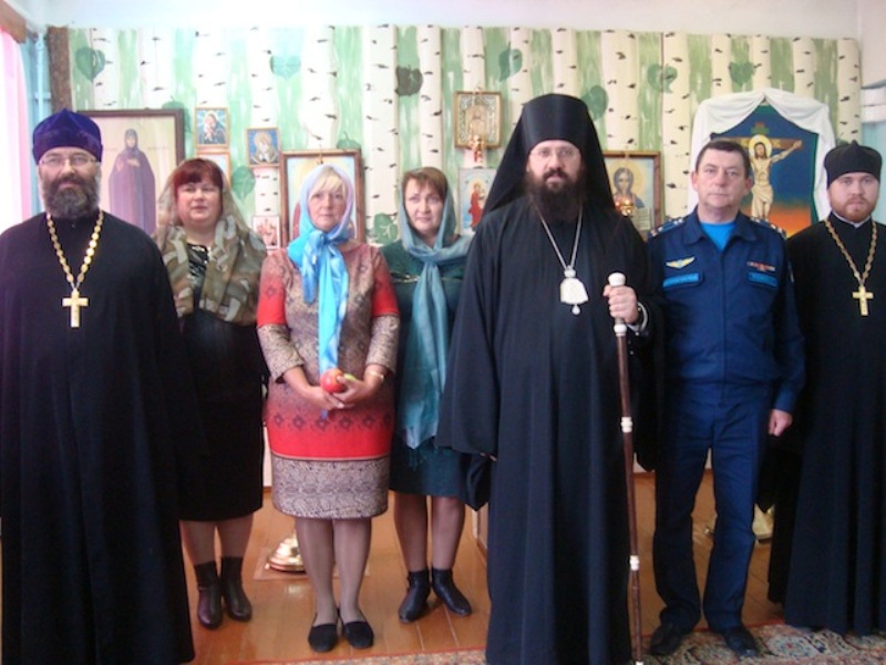 По окончании Богослужения Владыка обратился к прихожанам с архипастырским слово и подарил всем иконы святого мученика Василия Мангазейского с благословением Святейшего Патриарха Кирилла. После службы настоятель храма рассказал Владыке о планах развития прихода и познакомил с приходским активом.