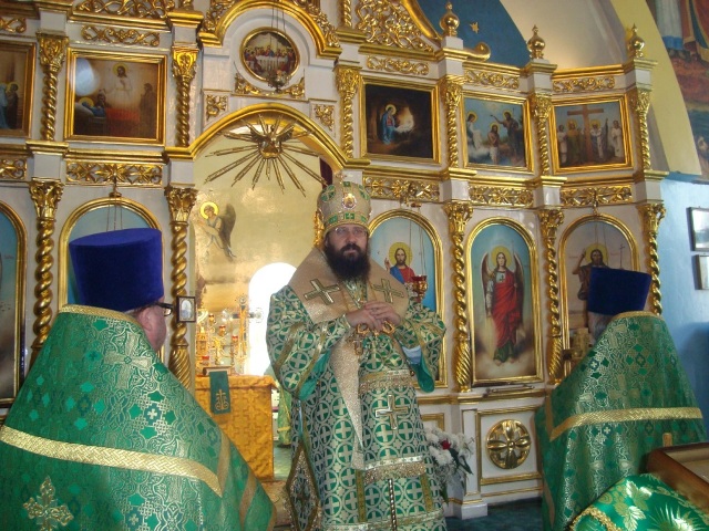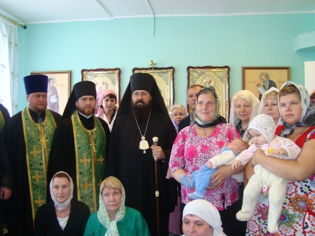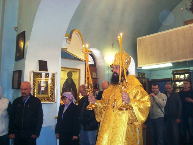 Владыка Агафангел в сослужении с протоиереем Владимиром совершили молебен с акафистом святителю Николаю, в пении которого приняли участие все молящиеся.