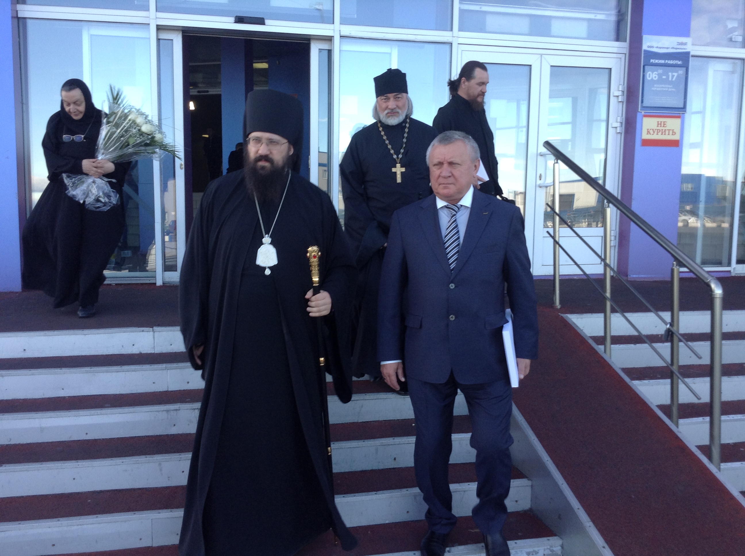 Владыку сопровождали клирики Норильской епархии: благочинный Туруханского мужского монастыря иеромонах Софроний (Семёнов) и и.о. заведующего канцелярией епархии иеромонах Герман (Мельников).