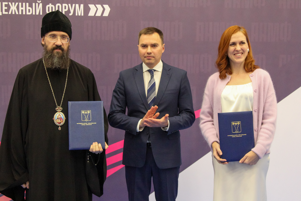 29 ноября 2024 года в рамках работы Арктического Норильского Молодежного Форума (АНМФ), проходившего в Молодежном центре города Норильска, состоялось торжественное подписание соглашения о сотрудничестве между Норильской епархией Русской Православной Церкви и муниципальным бюджетным учреждением «Молодежный центр» города Норильска.